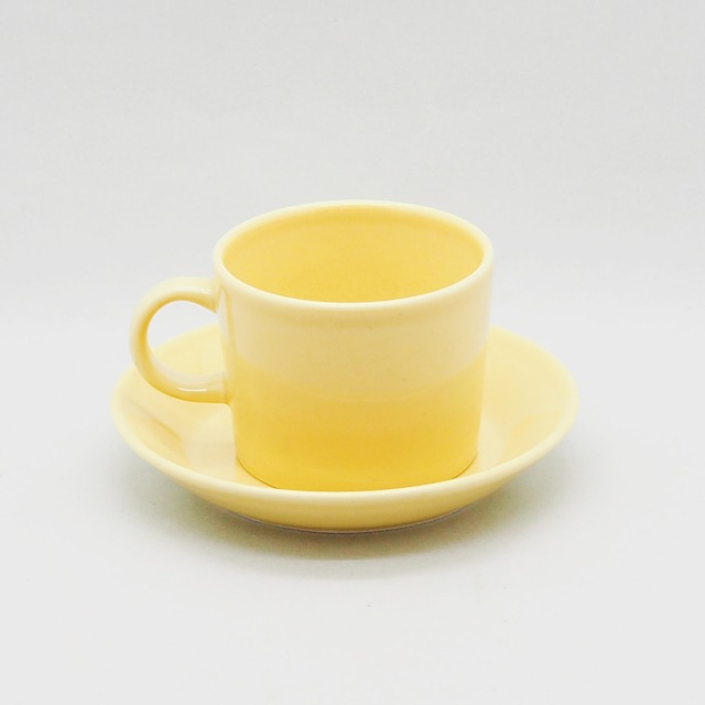 カイ・フランクが手がけたKILTA(1952~75年)の後継シリーズとして生まれたTEEMAは、1981年の発売以来世界で愛される人気アイテムとなり、現在は復刻版が販売されています。美しいフォルムと色、丈夫で使いやすい機能性を備え、カイ・フランクが提唱した「普遍的に継続して使えるシンプルで美しいプロダクト」の代表ともいえるアイテムです。くぼみの無いソーサーは、プレートとして単独でも活躍してくれます。 中でも、アラビア社がイッタラに統合される前に作られたヴィンテージイエローは、絶妙にクリーミーな色合い、大量生産にはない温もりあるフォルム、そしてアラビア時代の証であるブルーのバックスタンプなど、ヴィンテージしか持ち得ない魅力に満ちています。 こちらはコンパクトな小さめサイズのカップ&ソーサーです。 =========================== [メーカー]ARABIA(アラビア) [シリーズ]TEEMA(ティーマ) [デザイナー]Kaj Franck(カイ・フランク) [年代]1981~2005年 =========================== 〈サイズ〉 カップ=φ73 × H56 mm ソーサー=φ120mm 〈コンディション〉C カップ内側のフチにわずかなヤケ、ソーサーに若干のカトラリー跡がありますが、割れ欠けなどの大きなダメージはなく、全体的にツヤもあり、この年代のヴィンテージとしては良好なコンディションです。 ところどころに経年によるわずかな小傷やスレ、製造時のかすかなゆがみなどが見られます。 *白背景以外の写真はイメージ画像です。 ◉コンディションランクのめやす A:デッドストックなどの未使用品でダメージがほとんど無く新品同様のもの。 B:未使用品に限りなく近い綺麗な状態だが、光に当てればわかる程度の小傷やスレなどがあるもの。 C:小傷やスレなどがあり全体的に使用感はあるが、深い傷など目立つダメージはないもの。 D:経年による痛みが目立つが、使用には影響なくまだ楽しめるもの。 E:目立つ傷や割れ・欠けなどあり使用に影響が生じるジャンク品。 〈ヴィンテージ食器をお買い求めいただく際のご注意〉 こちらの商品は実際に使用されていたヴィンテージ(ユーズド)品ですので、経年による劣化や使用に伴う傷が多少ございます。また、手描きによるデコレーションの場合は、ペイントのかすれやにじみ、色ムラなどが見られることがあります。コンディション欄にてできるだけ詳しくご説明しておりますが、すべてを表記することができかねます。大切に受け継がれてきたヴィンテージ特有の風合いを楽しんでいただくことにご理解の上、ご注文いただけますようお願い申し上げます。