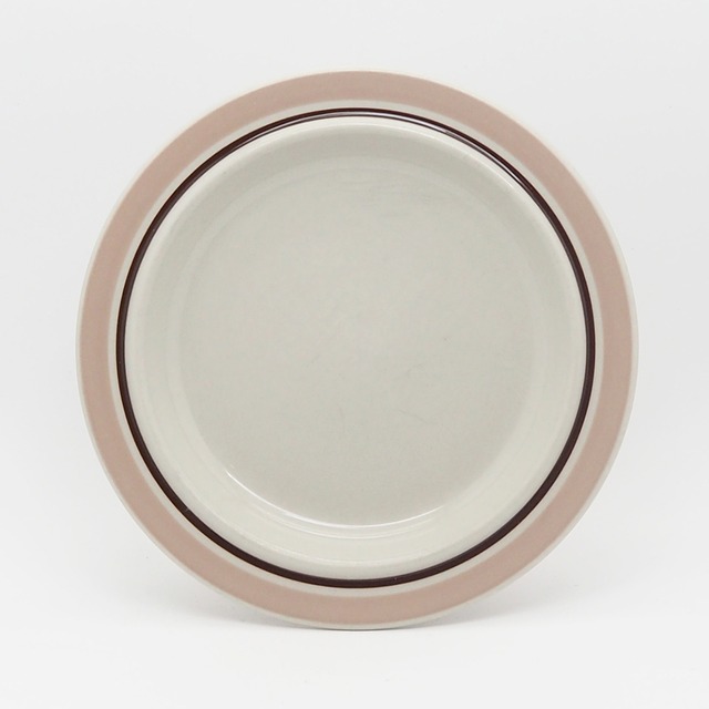 フィンランド語で「珊瑚」を意味する「Koralli(コラーリ)」シリーズ。ミルクティーのようなまろやかなピンクベージュとブラウンのラインが描かれています。やわらかいミルク色とのコントラストも美しく、スモーキーで温かくやさしい雰囲気です。製造数が少ないのと近年の人気爆発で、かなりの高騰を見せる希少なコレクターアイテムとなってしまいました。こちらは少しだけ深さのある17センチのプレートで、パンやデザートはもちろん、取り皿でも活躍してくれる使い勝手のいいアイテムです。 =========================== [メーカー]ARABIA(アラビア) [シリーズ]Koralli(コラーリ) [デザイナー] フォルム=Ulla Procope(ウラ・プロコッペ) デコレート=Raija Uosikkinen(ライヤ・ウォシッキネン) [年代]1983~87年 =========================== 〈サイズ〉 約 φ170 × H20 mm 〈コンディション〉C 表面にカトラリー跡が見られますが(写真をご参照ください)、大きなダメージはなく艶もあり、この時代のヴィンテージならではの味としてご愛用いただけるコンディションです。 ところどころに経年によるスレや小傷、ペイントにじみやかすれがございます。 *白背景以外の写真はイメージ画像です。 ◉コンディションランクのめやす A:デッドストックなどの未使用品でダメージがほとんど無く新品同様のもの。 B:未使用品に限りなく近い綺麗な状態だが、光に当てればわかる程度の小傷やスレなどがあるもの。 C:小傷やスレなどがあり全体的に使用感はあるが、深い傷など目立つダメージはないもの。 D:経年による痛みが目立つが、使用には影響なくまだ楽しめるもの。 E:目立つ傷や割れ・欠けなどあり使用に影響が生じるジャンク品。 〈ヴィンテージ食器をお買い求めいただく際のご注意〉 こちらの商品は実際に使用されていたヴィンテージ(ユーズド)品ですので、経年による劣化や使用に伴う傷が多少ございます。また、手描きによるデコレーションの場合は、ペイントのかすれやにじみ、色ムラなどが見られることがあります。コンディション欄にてできるだけ詳しくご説明しておりますが、すべてを表記することができかねます。大切に受け継がれてきたヴィンテージ特有の風合いを楽しんでいただくことにご理解の上、ご注文いただけますようお願い申し上げます。