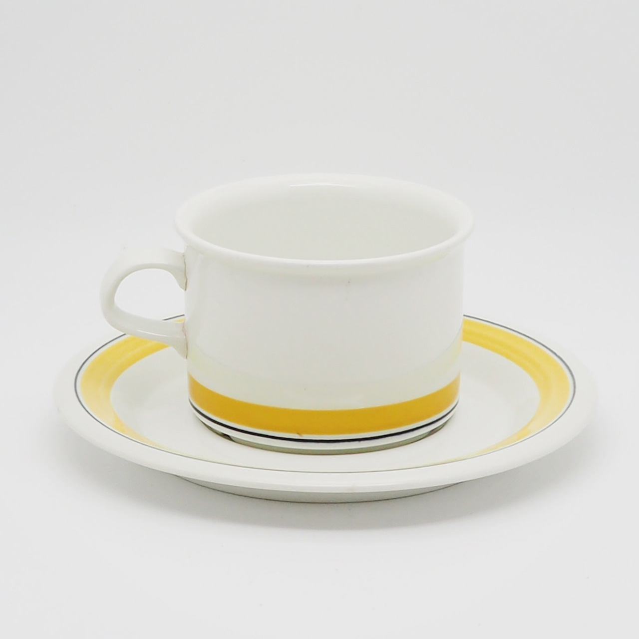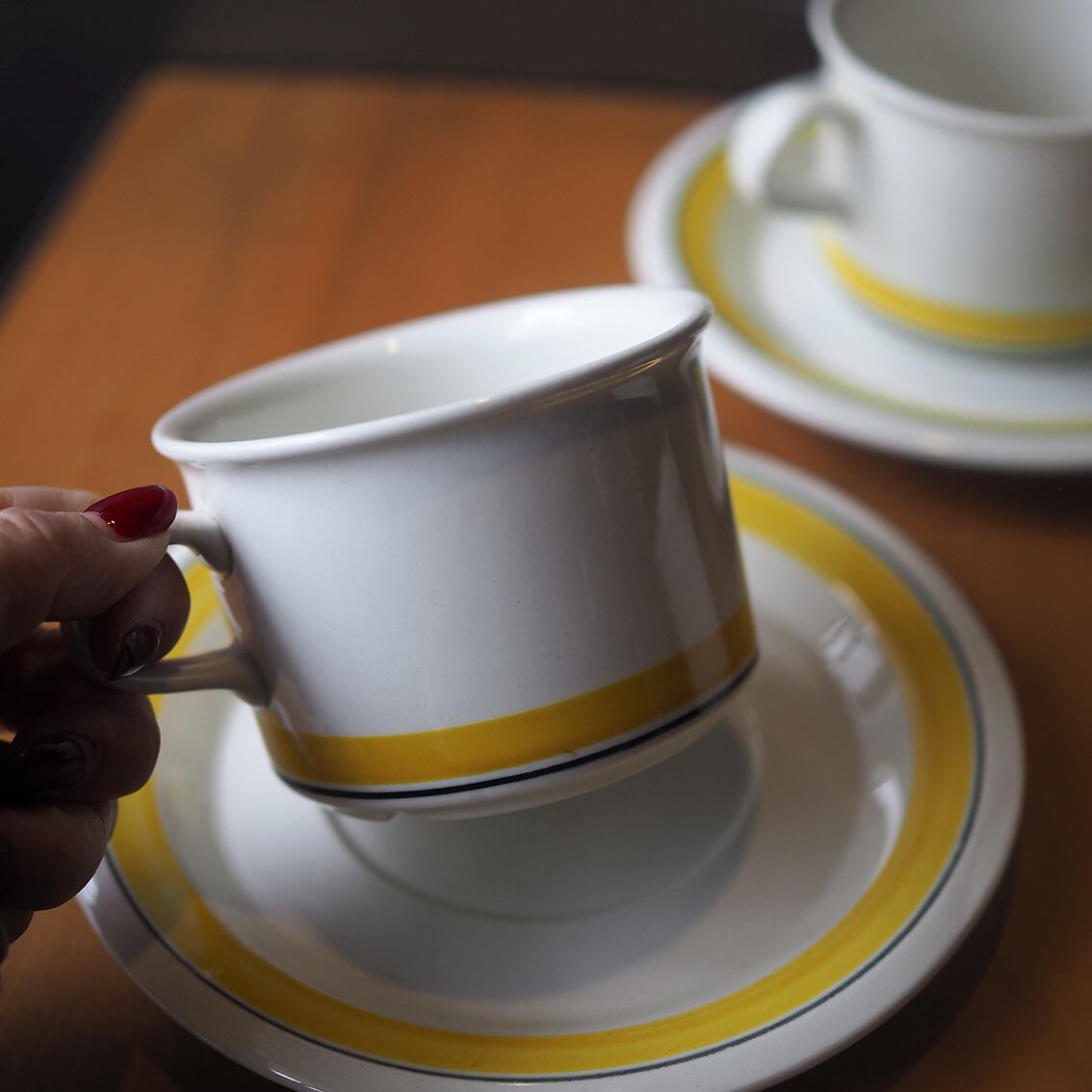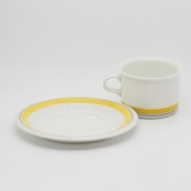 ARABIA Faenza Tea C&S(アラビア ファエンツァ ティーカップ&ソーサー 黄紺ライン/大)*少し難あり