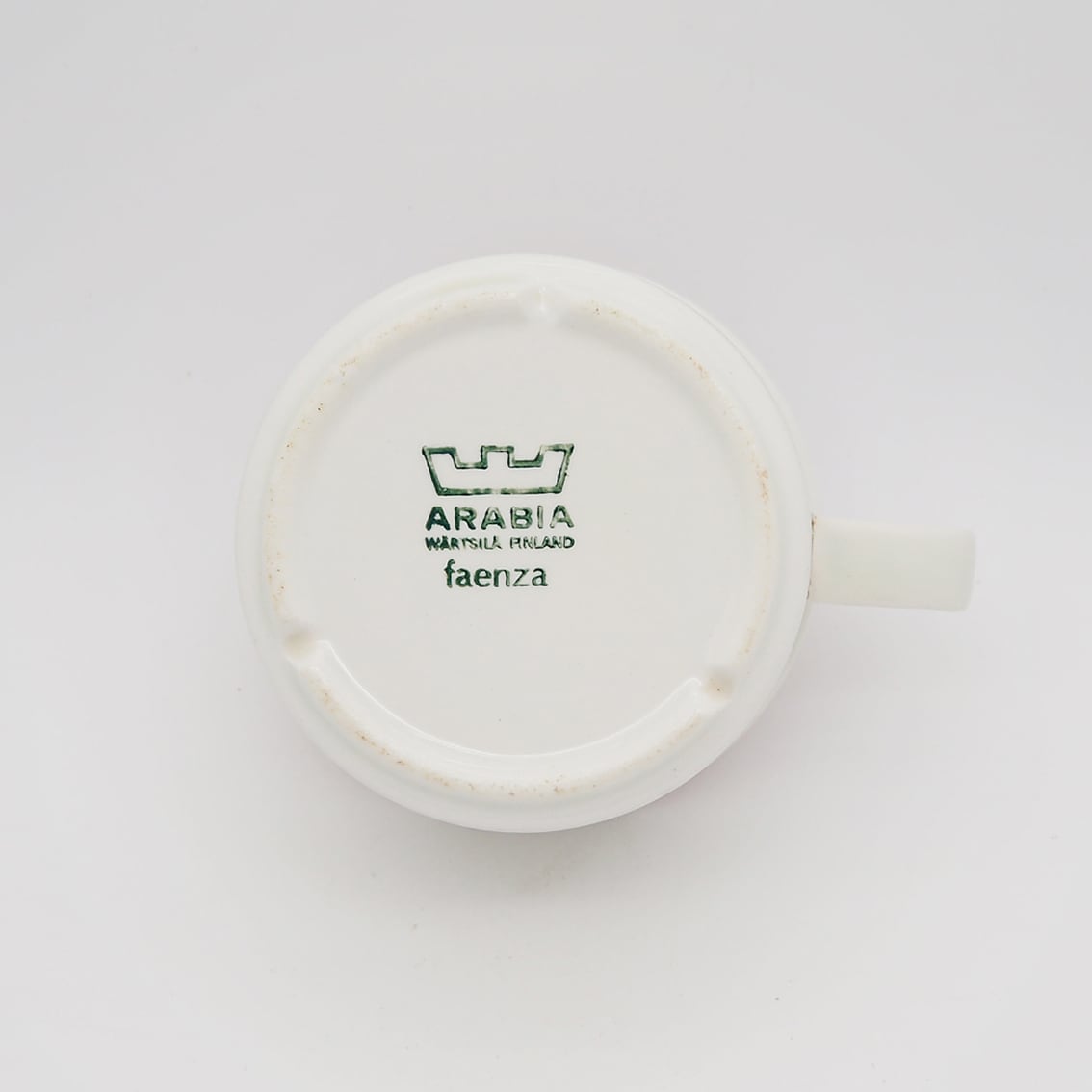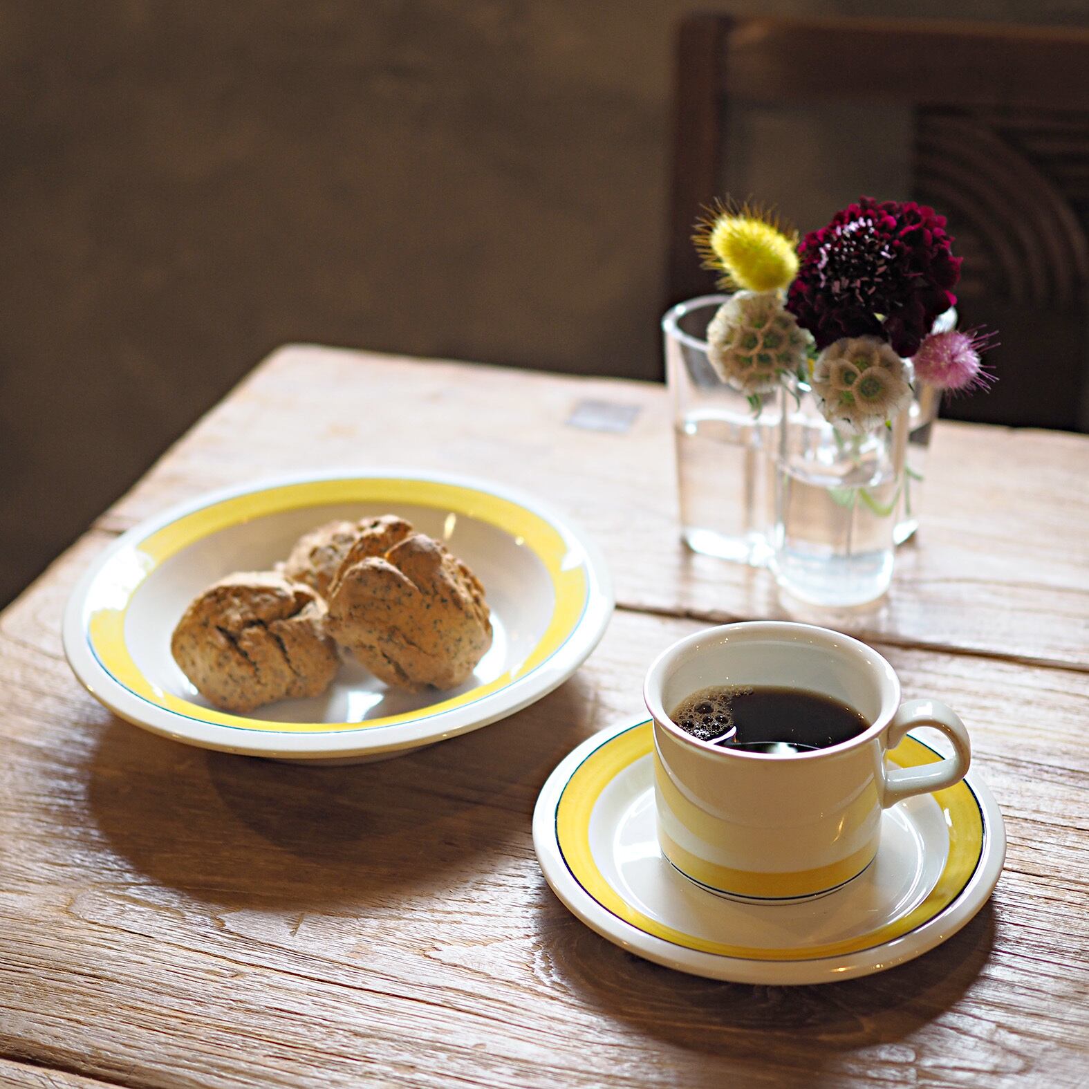 イタリアのFaenza(ファエンツァ)で開かれた国際陶芸展で金賞を受賞したのを記念に、その街の名前が付けられたシリーズです。可愛らしい小花柄のデザインも有名ですが、こちらはシンプルなラインのタイプ。黄色と紺の洗練された配色があかるくハイセンスで、食卓をぱっと明るくしてくれます。こちらはたっぷりとコーヒーやカフェオレ、紅茶が楽しめる大きなサイズで、普段使いにぴったりのチャーミングなカップ&ソーサーです。