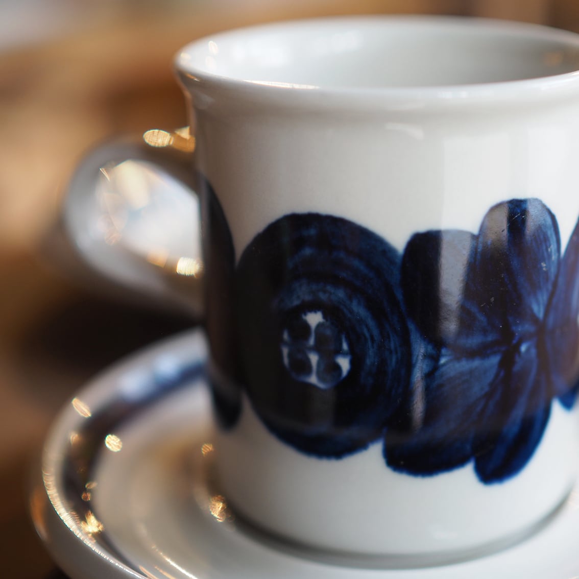 ARABIAを代表するデザイナー、ウラ・プロコッペがフォルムとデコレートデザインどちらも手掛けたAnemone(アネモネ)シリーズ。 深みのあるブルーと、数人の訓練された絵付師がフリーハンドで描いた花の模様が美しく、ひとつひとつすべて表情が異なります。こちらは1980年代に短期間販売された復刻版で、Sモデルのコーヒーカップ&ソーサーに、単独でも活躍する17センチのプレートが付いたトリオセット。アラビア全盛期の美しさを存分に味わうことができる、とっておきのアイテムです。