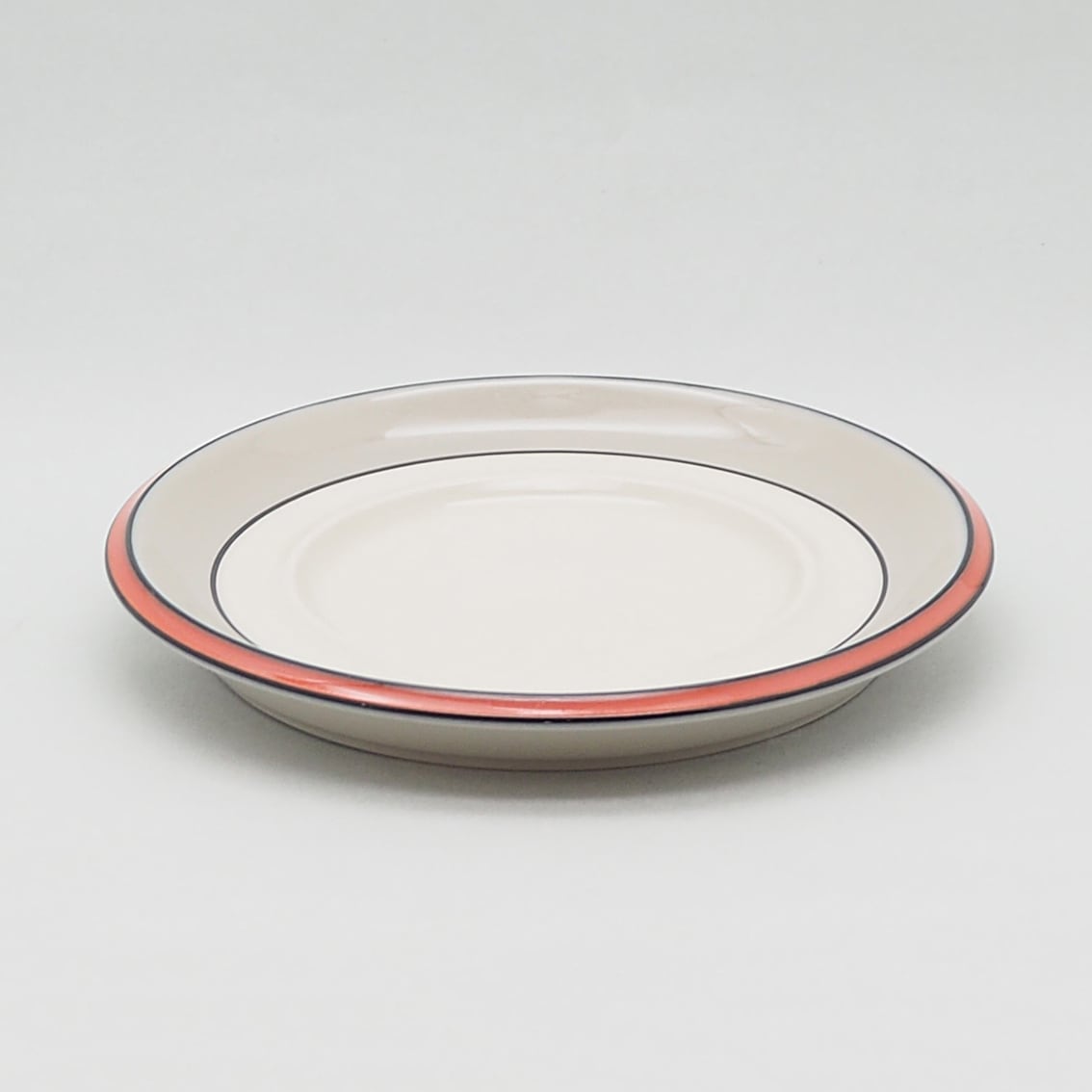 ところどころに、経年による細かい小傷・スレなどが、また手描きならではのペイント飛びやかすれがございます。ソーサーとプレートには、光に当てるとわかる細かいスレ(カトラリー跡)が見られます。
