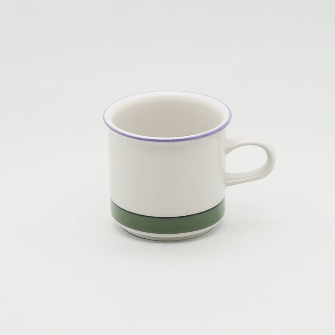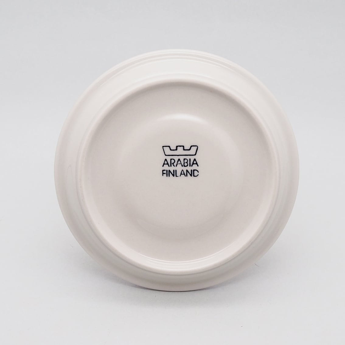 ウラ・プロコッペによるSモデルに大胆な配色のラインが施された「Selja」シリーズ。「Selja」とはフィンランド語で「エルダーベリー」の意味を持ち、グリーンで森や葉を、パープルで果実を表現したのだと思われます。ハンドペイントで描かれた斬新なカラーリングが洗練されていて美しく、フィンランドの森にいるような神秘的でさわやかな空気をまとっています。ARABIAで紫色が使われるのは珍しく、ライン使いのシンプルなシリーズの中でも流通が少ないレアなアイテムです。