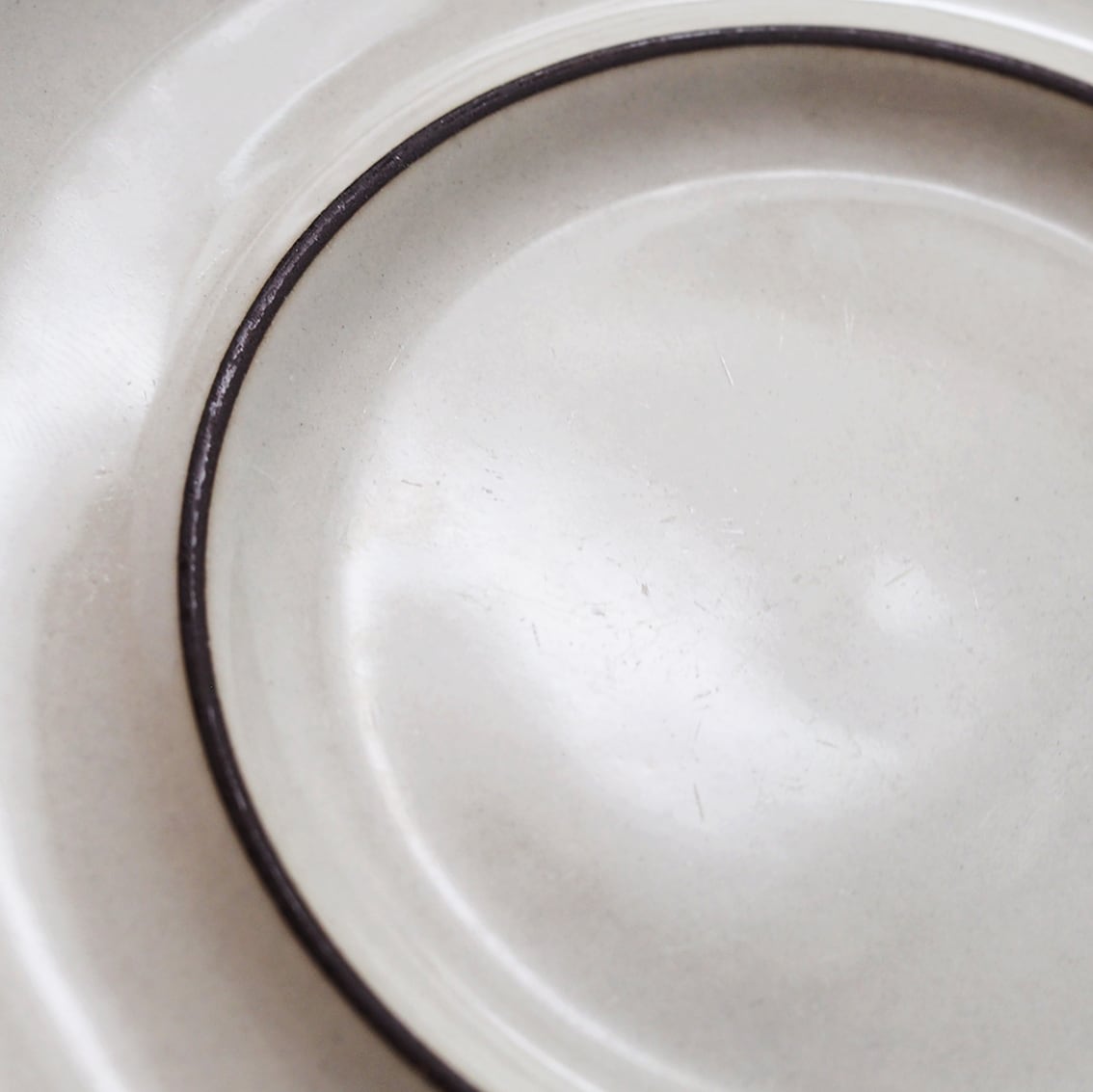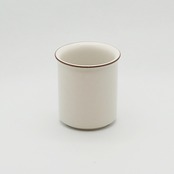 ラテン語で「フィンランド」を意味する「Fennica(フェニカ)」は、「Saimaa(サイマー)」と同じく、ウラ・プロコッペがデザインしたSモデルにリカルド・リンドがデコレートを手がけたシリーズです。フチだけに濃いチョコレート色のラインが描かれた潔いシンプルな意匠で、美しいSモデルのフォルムがいっそう際立ちます。やさしく絶妙なうすいベージュ地のカップは、コーヒーや紅茶がきれいに映えてくれます。シンプルで美しく飽きのこないデザインはARABIA最大の特長ですが、フィンランドの名をもつこのアイテムもまた、「美しい日常」を体現した隠れた代表作のように思えます。