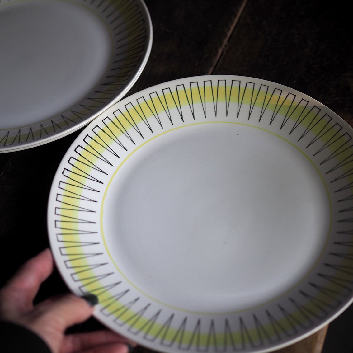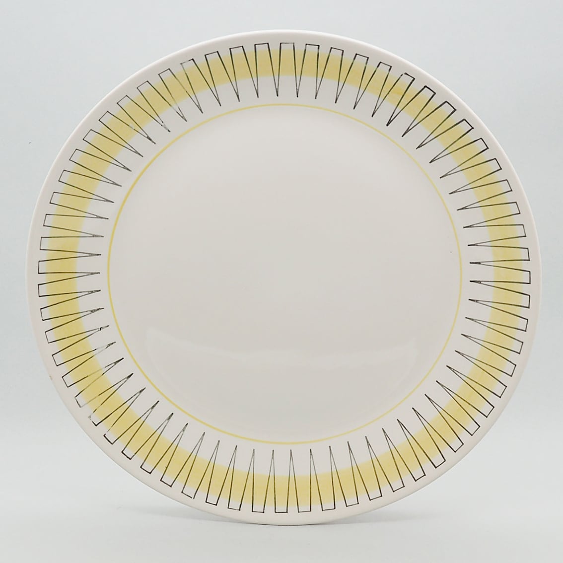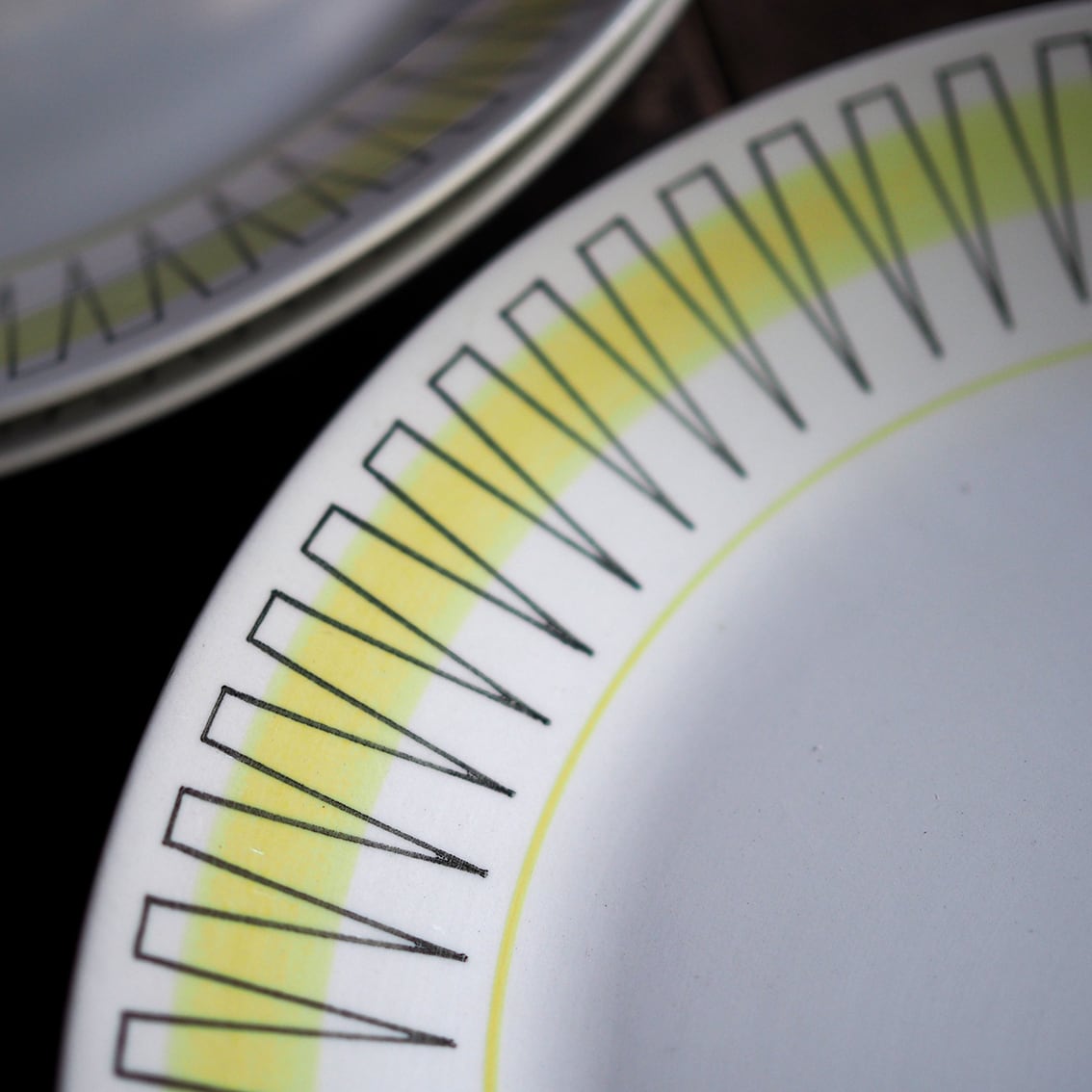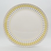 「Gefle(ゲフレ)」は、1910年にスウェーデンで創業した陶磁器ブランドです。1935年に「Upsara Ekeby(ウプサラエクビー)」に買収されましたが、1979年までゲフレブランドの良質なテーブルウェアを作り続けました。こちらはベリット・ターナーが手がけた、あかるいイエローのリズミカルなパターンが楽しい「PALACE」シリーズ。北欧らしいモダンなデザインですがクールすぎず、料理を載せるとテーブルに花が咲いたよう。24センチの使いやすいディナープレートで、軽くて扱いやすいのもうれしいポイントです。