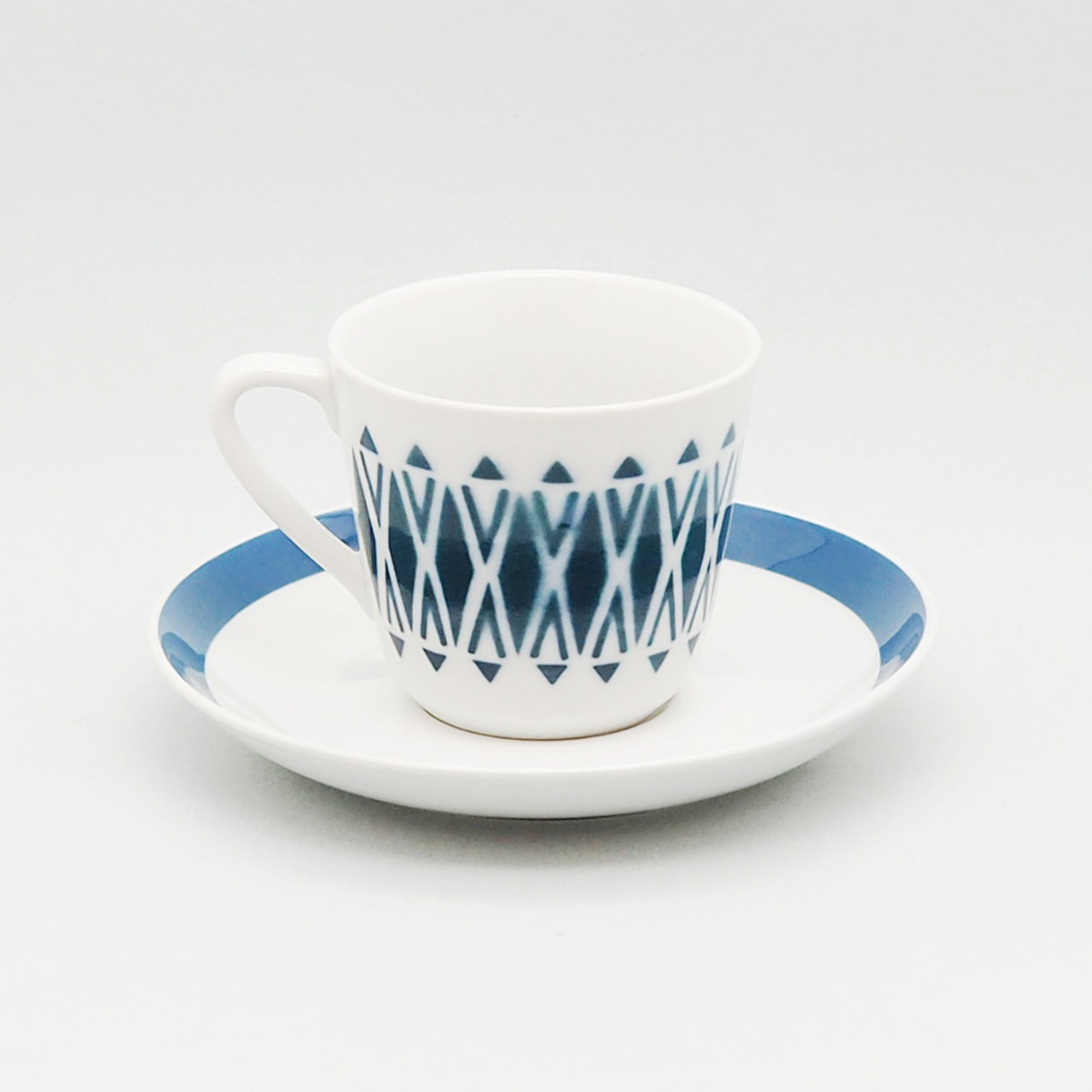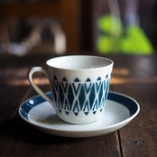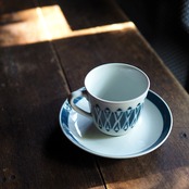 ARABIA Stencil seriese C&S(アラビア ステンシルシリーズ カップ&ソーサー)青緑幾何学模様