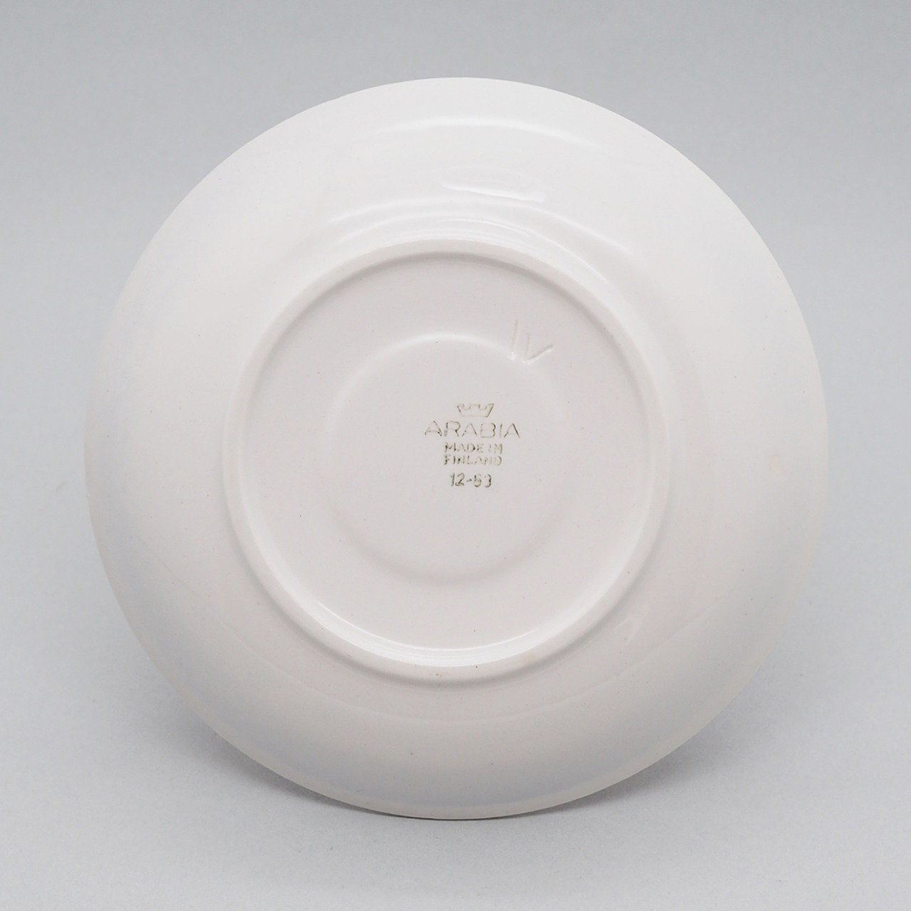 ソーサー裏に製造時の支柱跡と、なにかの刻印にも見える傷があります。ソーサーには若干のカトラリー跡がございます。