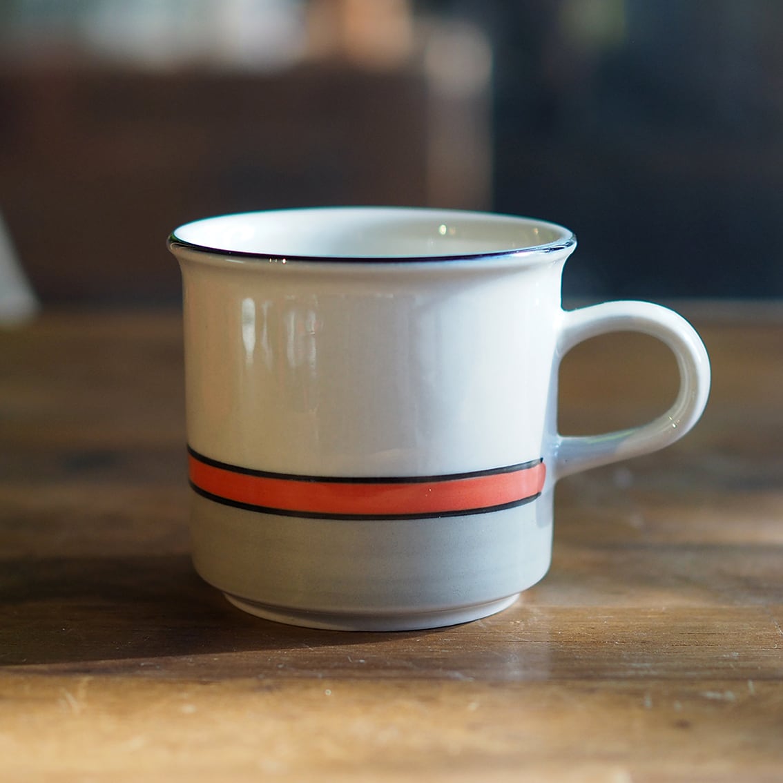 ラップランド地方の男性の名前を持つAslak (アスラク)は、Uhtuaなどと同じくウラ・プロコッペとインケリ・レイヴォのコンビによる作品です。シンプルなラインのみの構成ながら、モノトーンの中に絶妙なアプリコットオレンジがぱっと目を引くポイントになっており、モダンで洗練された配色はいちど見たら忘れられない魅力を持っています。真上から見ると波紋のように広がるソーサーのライン配置も絶妙。こちらは小さめで使いやすいサイズのコーヒーカップ&ソーサーです。