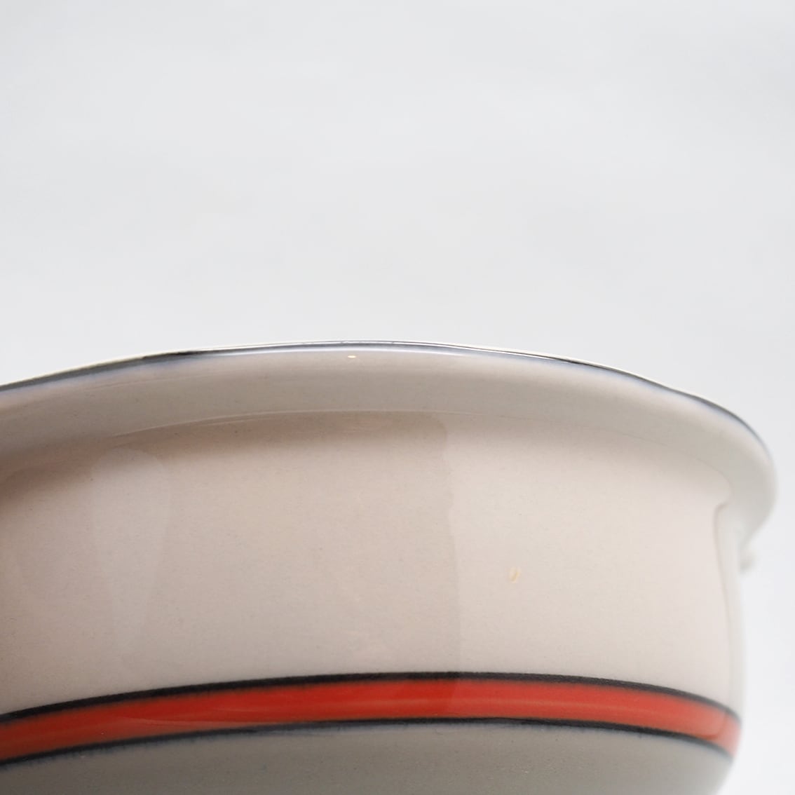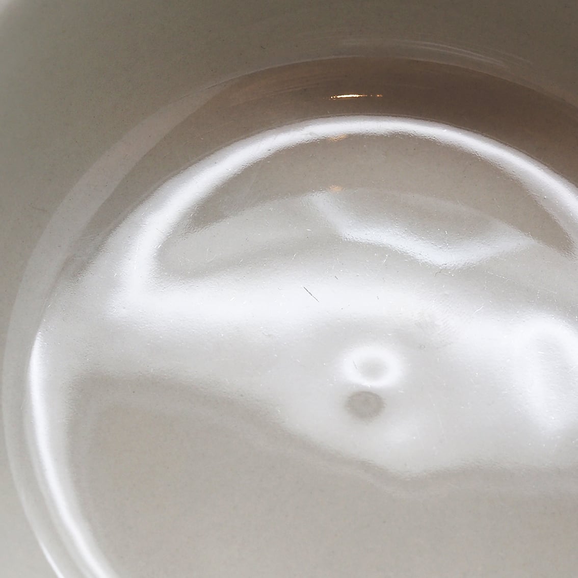ところどころに、経年によるごく細かい小傷・スレ・汚れなどが、また手描きならではのペイント飛びやかすれ、製造時のわずかなゆがみなどがございます。内側に、光に当てると見える程度の細かいスレ(カトラリー跡)が見られます。