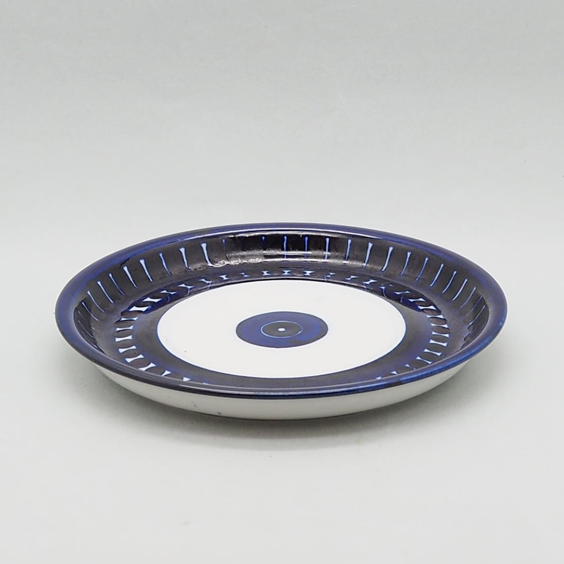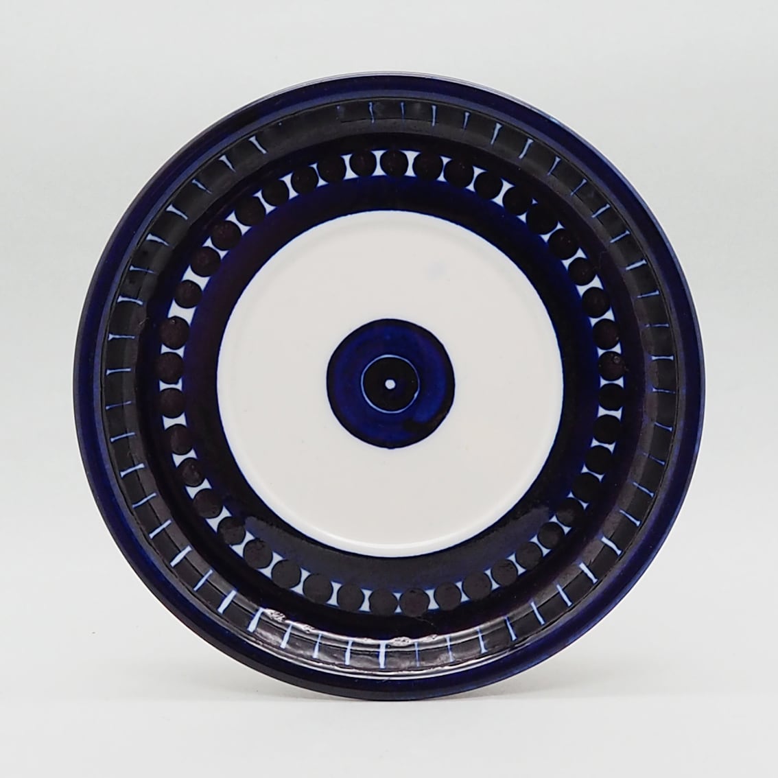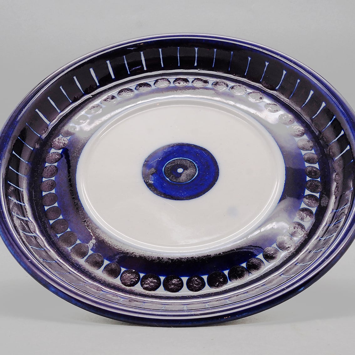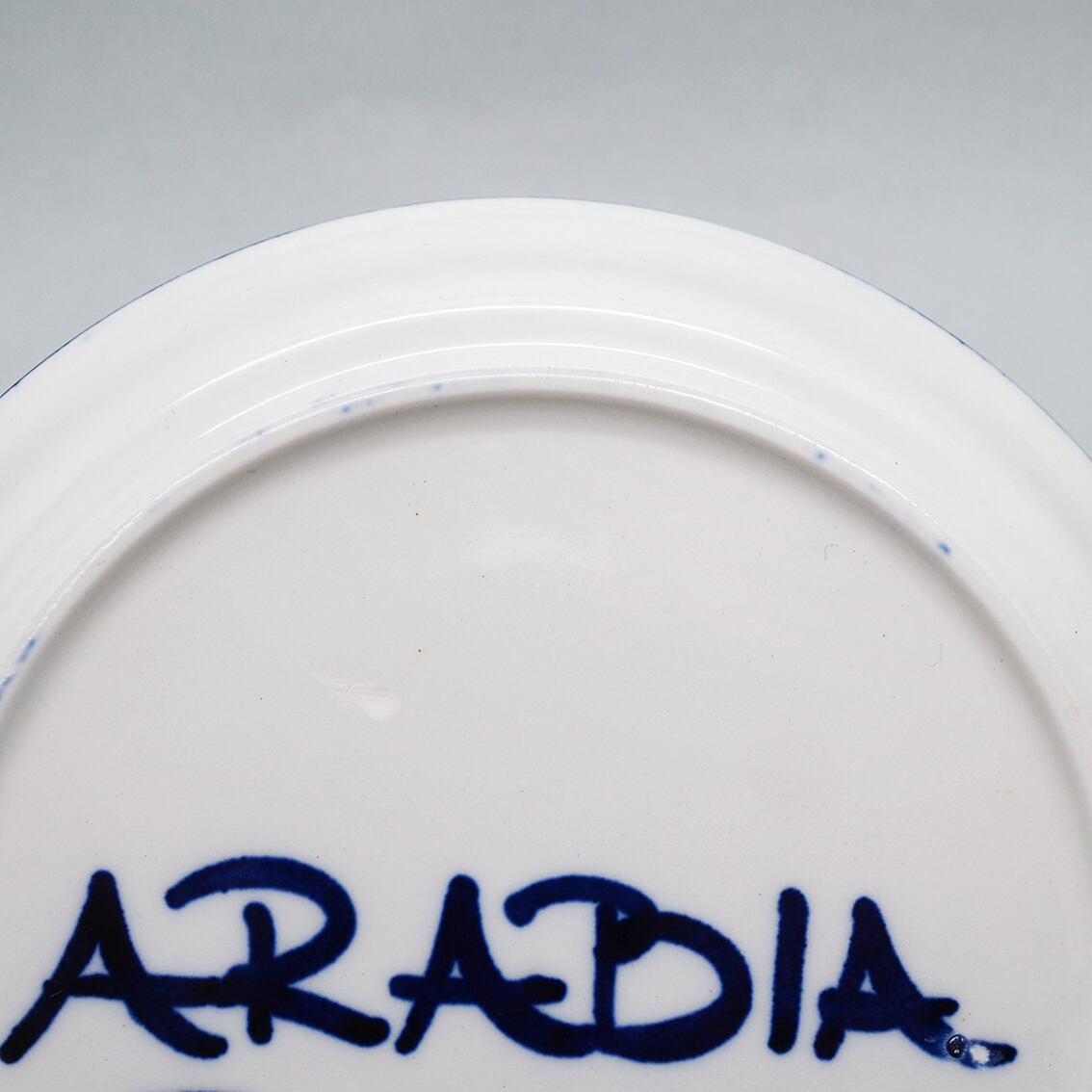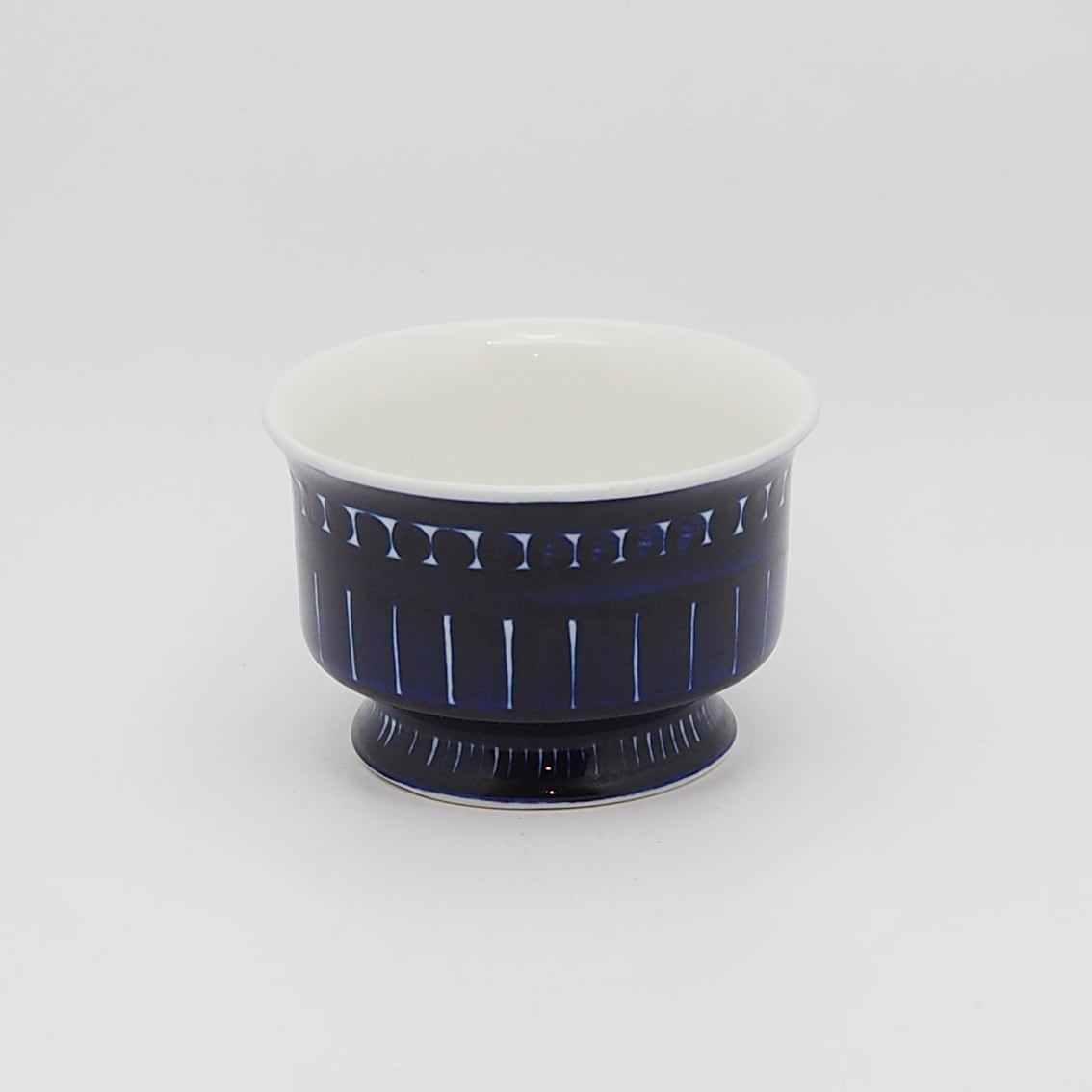 アラビア社を代表するデザイナー、ウラ・プロコッペがデザインしたシリーズの中でも人気が高くコレクターが多いValencia(バレンシア)シリーズ。はっとするくらい美しいコバルトブルーの絵柄はすべてフリーハンドで描かれたもので、全く同じものはひとつもありません。また、裏面のハンドペイントサインは、1960年代初期にフィンランド国内販売用に製作されたものにしか見ることができない貴重なものです。「バレンシア」とはスペインの州都の名で、若い頃を南欧で過ごした彼女がスペインの影響を受けてデザインしたと言われています。のびのびと大胆に描かれたハンドペイントは、南欧の明るい太陽やおおらかな空気を表現したのでしょうか。こちらは中でも出会うのが難しい大きなティーカップ&ソーサー。コンディションも良好でレアなアイテムですが、ぜひ普段使いとして毎日の暮らしに取り入れていただきたい名作です。