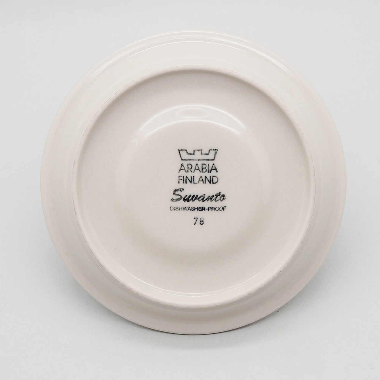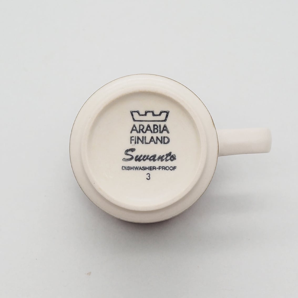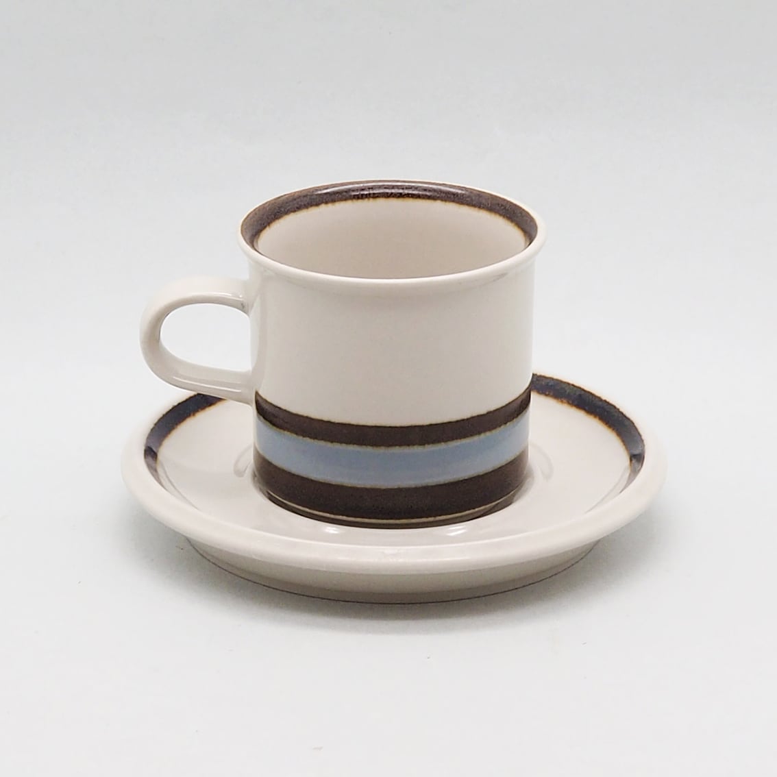 ARABIAを代表する名デザイナー、Ulla Procope(ウラ・プロコッペ)が生んだSモデルに、Raija Uosikkinen(ライヤ・ウオシッキネン)がデコレートデザインを手がけたSuvanto(スヴァント)シリーズ。フィンランド語で「静かな水の流れ」という意味を持つ名前のとおり、なんともいえない澄んだ水色と、岸や木々を思わせる深いブラウンのボーダーが美しく、ラインの境目のにじみ具合、手描きならではのかすれなど、絶妙な味わいがあります。シンプルであわせやすく、毎日使える飽きの来ないアイテムです。