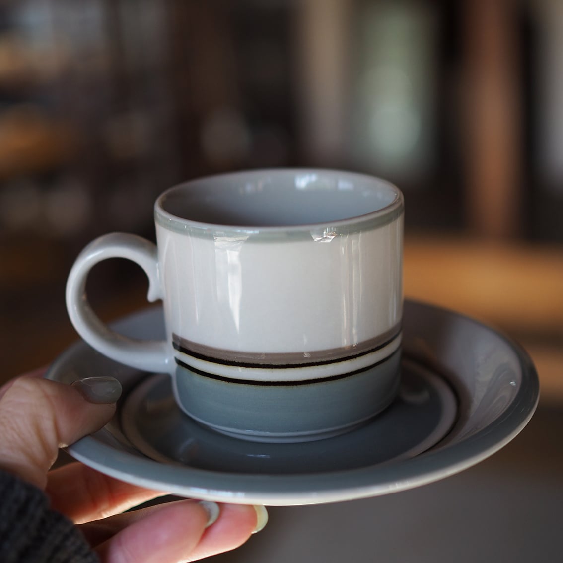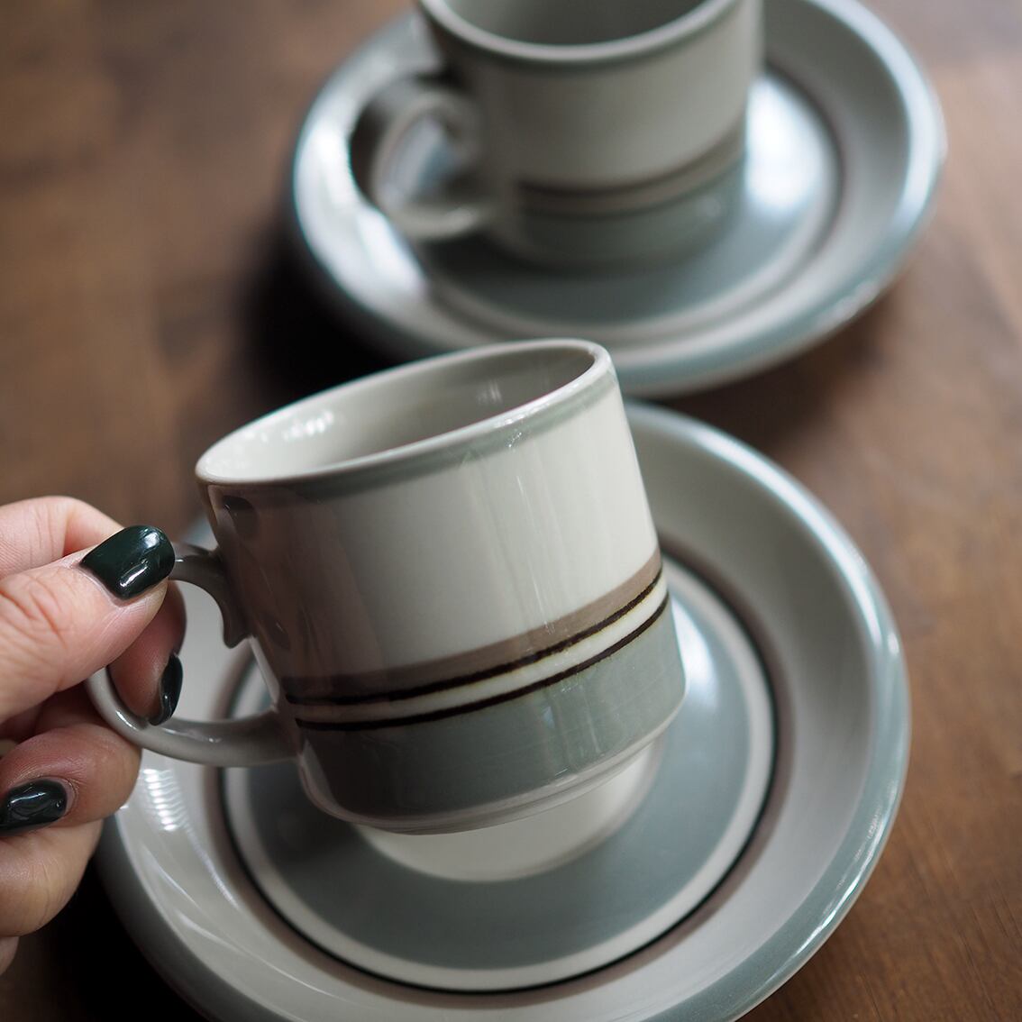 フィンランド語で「渓谷」という意味を持つ「Kuru」シリーズ。フィンランドの豊かな自然を思わせるナチュラルな色合いのラインが施された、シンプルで美しいたたずまいです。くるんとした持ち手がかわいいフォルムデザインを手がけたのは、PajuやSaaraを生んだAnja Jaatinen-Winquist(アンヤ・ヤーティネン・ウィンクヴィスト)。同じフォルムでデコレーションが異なるシリーズもいくつか存在するので、柄違いで集めるのも楽しいです。和食器との相性も良く、普段使いにおすすめできます。