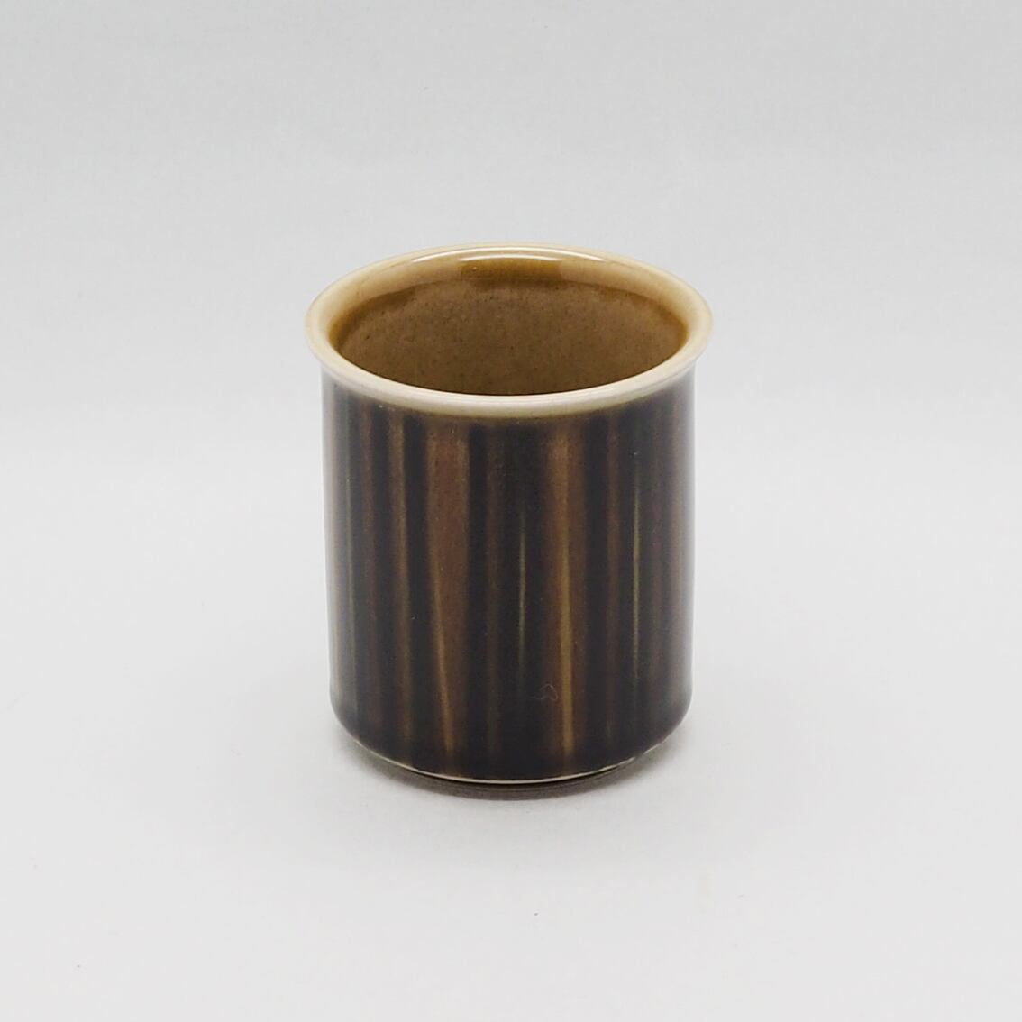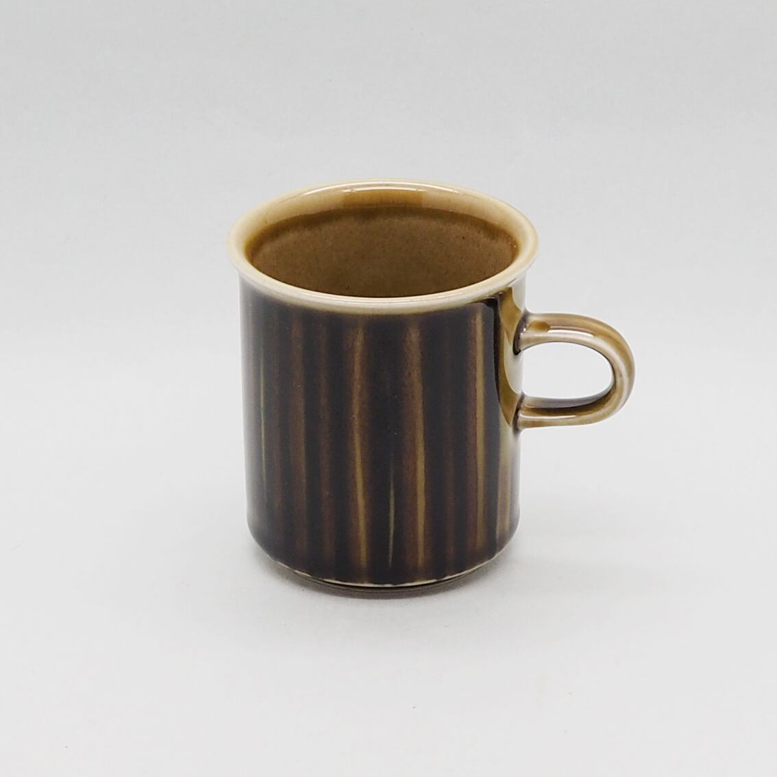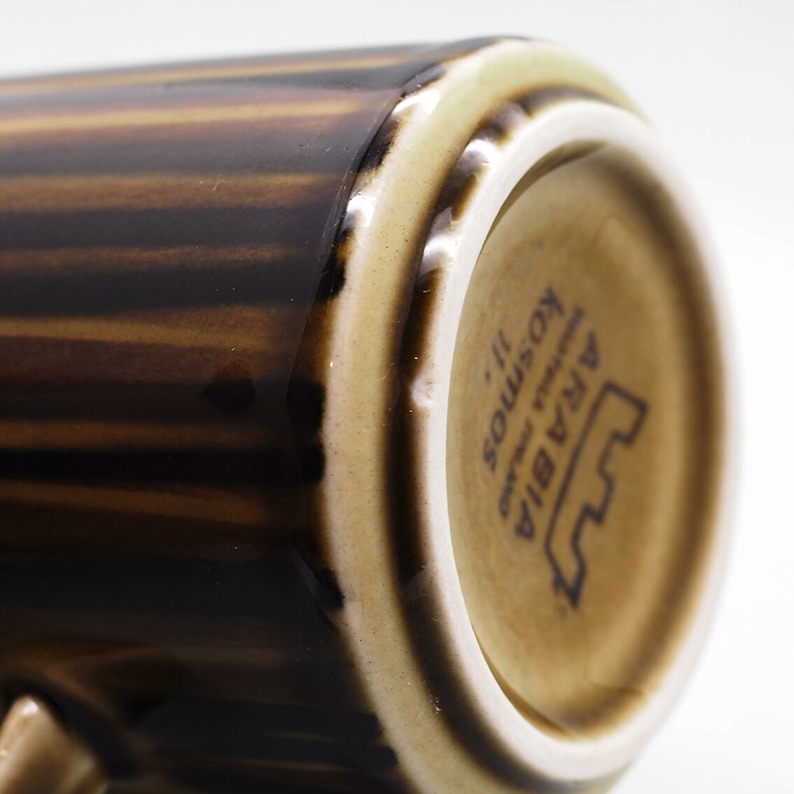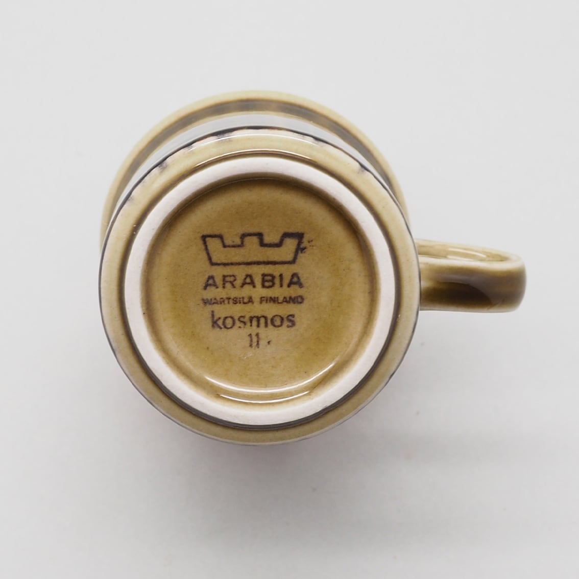 ヴィンテージアラビアの定番として多くのファンを持つKosmosシリーズ。ウラ・プロコッペが手がけたフォルムに、独創的なデザインで知られるGOG(グンヴァル・オリン・グラングヴィスト)による味わい深いデコレートが施されています。コスモスの花弁を表現したと思われる、深い茶・グリーン・黒のシックな色合いのペイントは手描きのため、ラインの太さや色合いがひとつひとつ異なるのも魅力。落ち着いた美しさで和の食卓にもしっくり馴染んでくれます。アラビアの定番であるSモデルのコーヒーカップは、縦長のフォルムと高めの位置にちょこんと付いた耳のような持ち手のバランスが洗練されていて、美しく使いやすいロングセラーです。