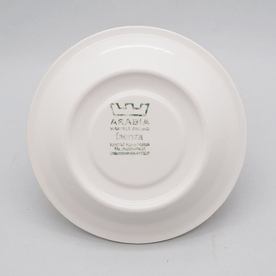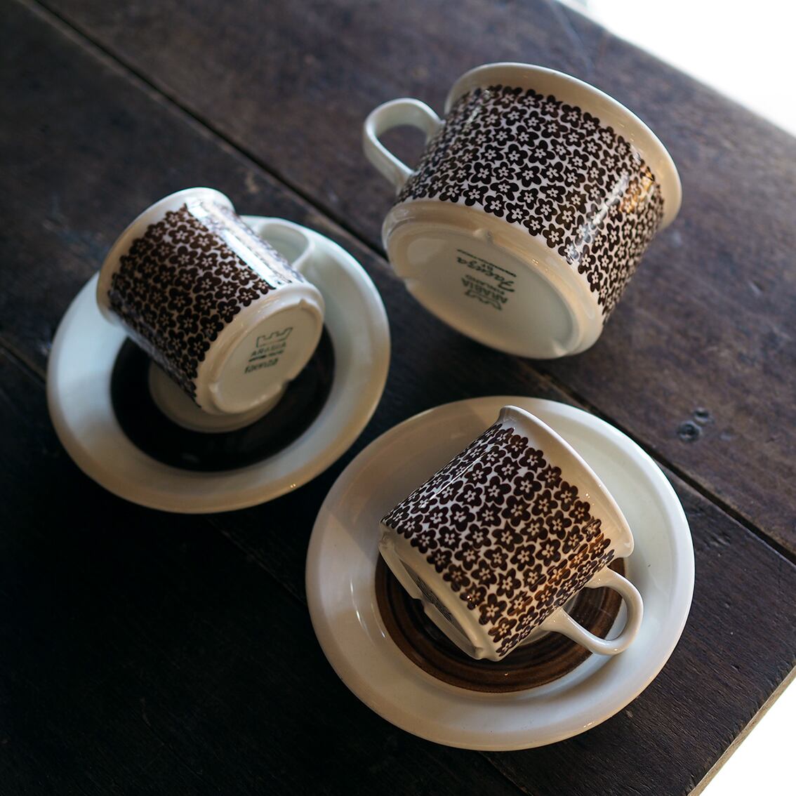イタリアのFaenza(ファエンツァ)で開かれた国際陶芸展で金賞を受賞したのを記念に、その街の名前が付けられたシリーズです。落ち着いたブラウンの小花が散りばめられた可憐なデコレートはInkeri Seppala(インケリ・セッパラ)によるもの。かわいらしいけれど洗練されていて甘すぎないデザインが見事です。1970年代のARABIAヴィンテージらしさが満喫できるレトロモダンなカップ&ソーサーは、食卓をぱっとあかるく心地いい空間にしてくれる名作です。