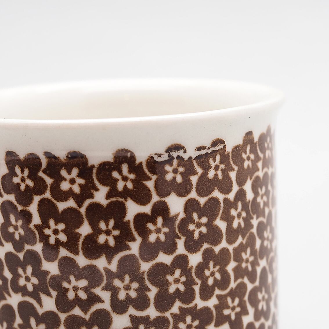 ソーサーにカトラリー跡が、カップの一部にプリント抜けが見られます。