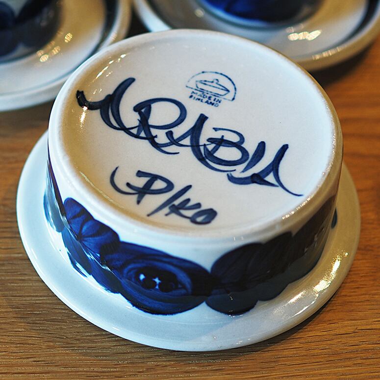 ARABIAを代表するデザイナー、ウラ・プロコッペがフォルムとデコレートデザインどちらも手掛けたAnemone(アネモネ)シリーズ。 深みのあるブルーと、数人の訓練された絵付師がフリーハンドで描いた花の模様が美しく、ひとつひとつすべて表情が異なります。1962年から76年まで製造されていたオリジナル版はバックプリントも手描きで、カップ裏にウラ・プロコッペと絵付師のイニシャルがハンドサインで残されています。こちらは直径13センチのボウルで、裏にかわいいオーブンOKのマークが付いており、お茶の時間から食事のシーンまで、いろいろな使い方ができそうな万能アイテムです。