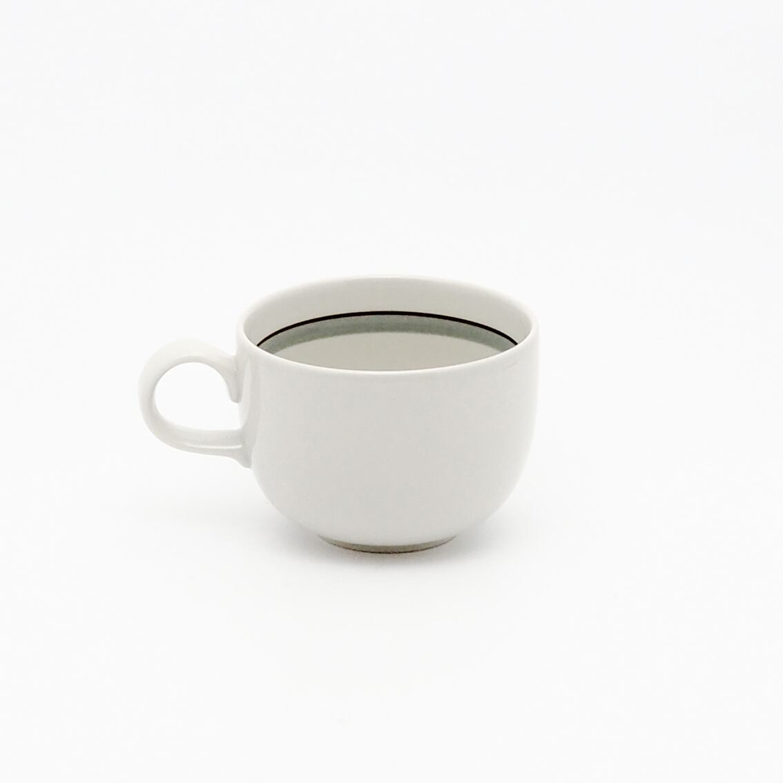フィンランド南部、トゥルク諸島航路にある沿岸地域の名前を持つ「Airisto」は、インケリ・レイヴォが手がけた1980年代製造のシリーズです。うすいグレー地のカップの内側にグレーとブラウンのラインが描かれ、北欧独特のうすぐもりの水辺のような雰囲気があります。名前にちなんでソーサーのバックスタンプにカモメのシルエットが描かれているのもときめくポイント。こちらは、小さめカップ&ソーサーにケーキプレートが付いた希少なトリオで、お茶の時間はもちろん、朝食に使っていただいてもすてきです。