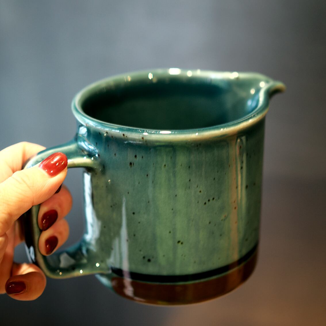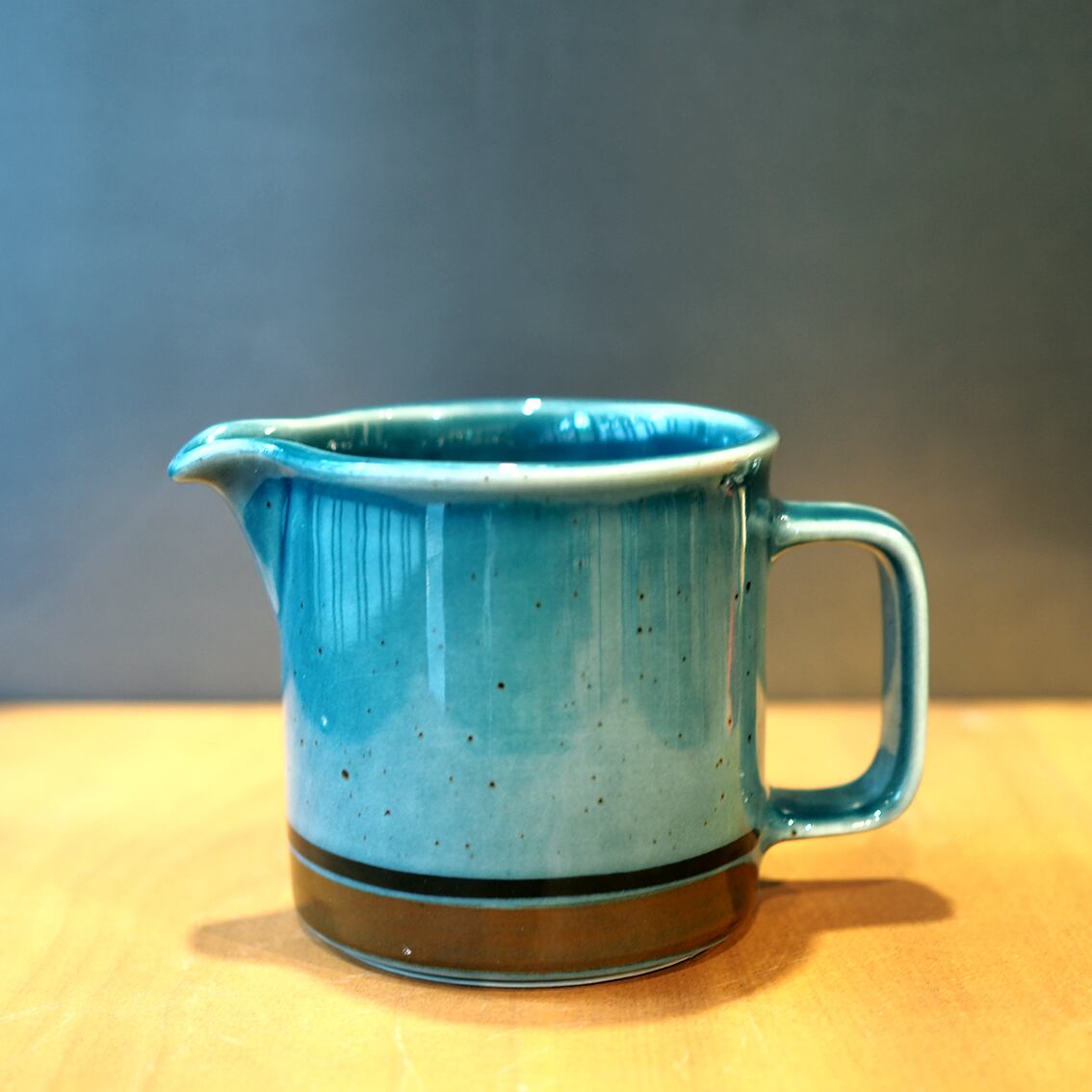 フィンランド語で「海」という意味を持つ「Meri(メリ)」シリーズ。深海を思わせる優美なブルーに、焼成時に生まれる黒い斑点が印象的で、ライン使いも洗練された美しいデザインはウラ・プロコッペによるものです。釉薬の濃淡、斑点の表情はひとつひとつ異なり、まったく同じものは存在しません。海のきらめきを思わせる美しいツヤも魅力。こちらは出会うことの少ない珍しいミニジャグで、飲み物のサーブはもちろん、花器として使ったり、キッチンツールを挿してキッチンに置いても雰囲気があってすてきです。